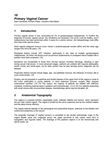 3 Pathology Three macroscopic types have been reported (8,9,15): superficial (5 - 10%), exophytic and ulcerating (50 - 70%), infiltrating (25 - 35%). The preferential primary sites are upper third posteriorly and lower third anteriorly, but 40 to 50% of tumours are multifocal. The histological types are: squamous cell carcinoma (80 - 85%), adenocarcinoma (10 - 15%), sarcoma and melanoma (2 - 3%) and others (1 - 2%). (8,9) Work Up Local primary disease assessment requires a very careful gynaecological examination, if possible by more than one physician, and may need general anaesthesia. It is important to exclude a tumour arising elsewhere and involving the vagina (most often cervix cancer) or metastases into the vagina, e.g. from gynaecological tumours (endometrium, ovarian cancer) or other malignancies. (9,15) The site of the tumour within the vagina, the macroscopic characteristics (exophytic and/or ulcerative growth), and any regional spread outside the vagina must be carefully assessed and documented. (8) A vaginal imprint (Fig 16.1) is the most adequate documentation of intravaginal tumour topography and morphology and should be systematically performed (see chapter 14 on cervix). (10) 4